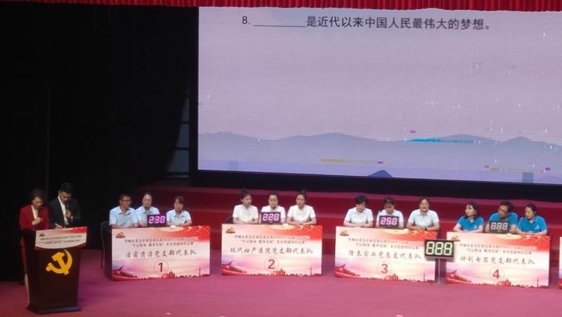 不忘初心跟黨走,牢記使命譜華章!為了慶祝中國(guó)共產(chǎn)黨成立99周年,6月28日下午,晉城市非公企業(yè)黨委在澤州天泰錦辰煤業(yè)有限公司職工文化宮進(jìn)行了一場(chǎng)別開(kāi)生面的“牢記使命 服務(wù)發(fā)展”黨建知識(shí)競(jìng)賽。潔霸清潔黨支部、現(xiàn)代婦產(chǎn)醫(yī)院黨支部、隆泰實(shí)業(yè)黨總支、神利電器黨支部、眾宸工貿(mào)黨支部和蔬菜公司黨支部等六支代表隊(duì)在此激戰(zhàn)正酣,各代表隊(duì)你追我趕,斗志昂揚(yáng),不甘落后,力爭(zhēng)上游,最終,我公司支部代表隊(duì)榮獲比賽三等獎(jiǎng)。