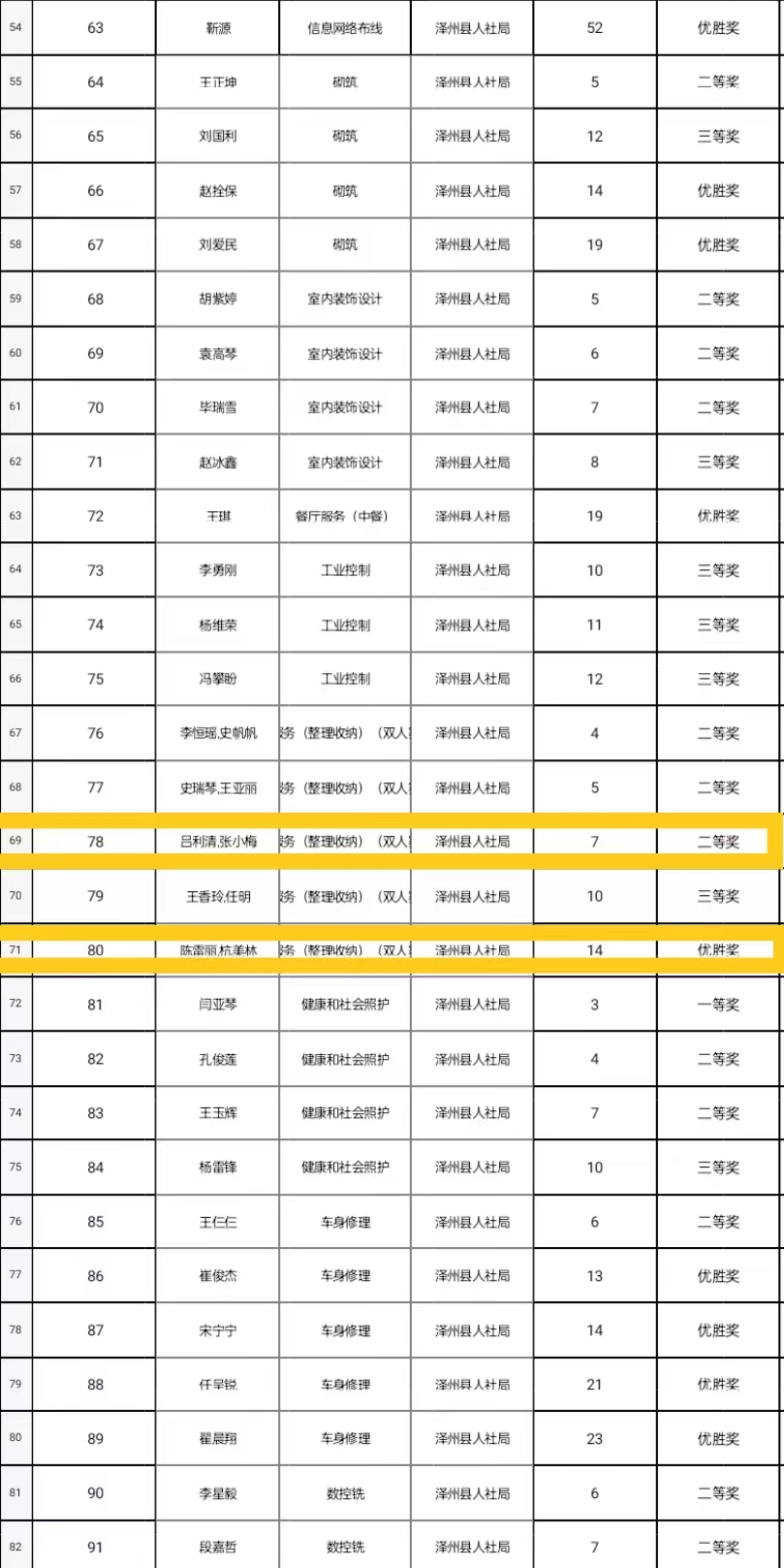 近日,從澤州縣人社局傳來好消息,公司呂利清、張小梅在第三屆晉城職業(yè)技能大賽家政服務(wù)(整理收納)項目(雙人賽)中榮獲二等獎,陳雷麗、杭美林在同項目中榮獲優(yōu)勝獎。