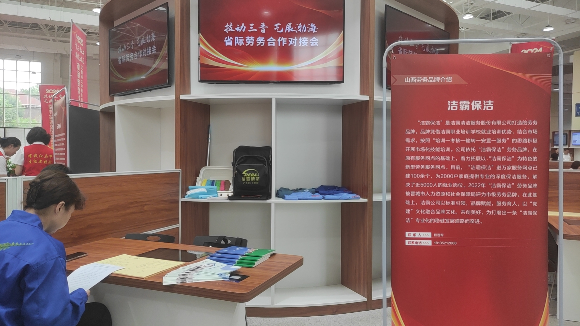 5月24日,“技動三晉 藝展渤!笔‰H勞務(wù)合作對接會在中國(天津)人力資源發(fā)展促進中心舉辦。公司勞務(wù)品牌“潔霸保潔”作為山西省勞務(wù)品牌受邀參加本次展示交流對接活動。