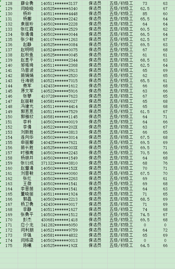 晉城市潔霸清潔服務(wù)股份有限公司職業(yè)技能等級(jí)認(rèn)定中心現(xiàn)將2024年6月2日認(rèn)定人員成績(jī)公示如下: